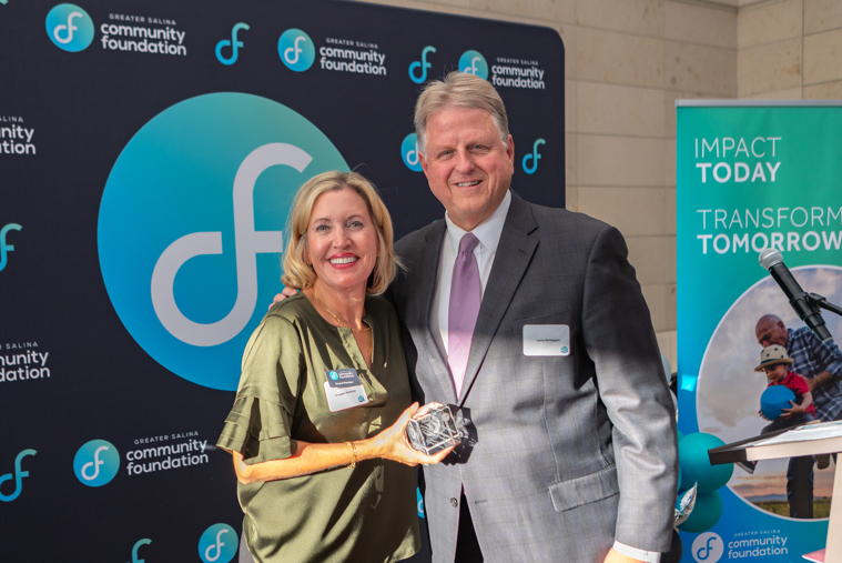 Larry’s idea to partner with financial advisors, has grown to include 15 outside investment managers, managing over $40M for 50 different donor funds. Larry has continued to support the Foundation by establishing the Salina Youth Baseball Fund, the Foundation’s first field of interest fund; creating a permanent scholarship fund in memory of his grandparents John and Alfra Ritter; and designating a portion of his estate to the Foundation. Through his banking career, he has also helped support charitable giving workshops as an Education Partner and the Give Back 5 Community Giving Pledge.